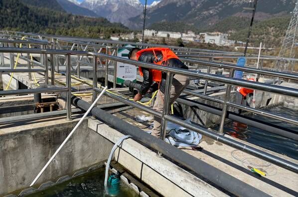 為避免池底及八字口淤泥過多影響出水水質(zhì),11月17日,吉隆鎮(zhèn)污水處理廠安排工作人員采用人工清洗的方法對廠內(nèi)的污水池進行徹底的清洗。工作人員以高壓水槍和人工洗刷等方式清除二沉池、斜管沉淀池及出水口等地方的青苔及淤泥,沖洗后的污水通過排空口排到廢水池,進行二次處理,污水池及時清洗很大程度上能避免出現(xiàn)二沉池污泥上浮、藻類生長等問題。此次清洗池子既提高了出水水質(zhì),又排除了池子漏水等潛在危險。沖洗完的污水通過調(diào)節(jié)池再一次回流到生化池進行二次生化處理,使得廠區(qū)所有污水得到了完善的處理。
